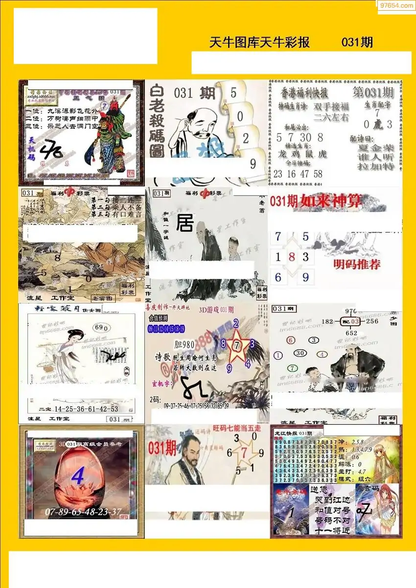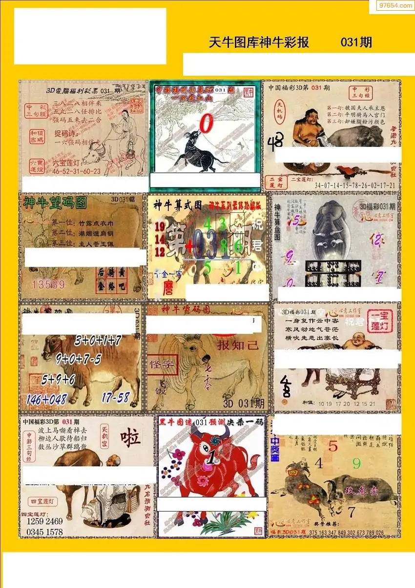 福彩3D031期天牛彩吧套图整合总汇