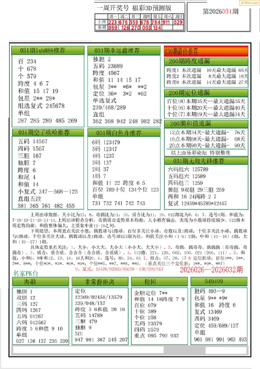 26年045期3D各板块资料整合汇总