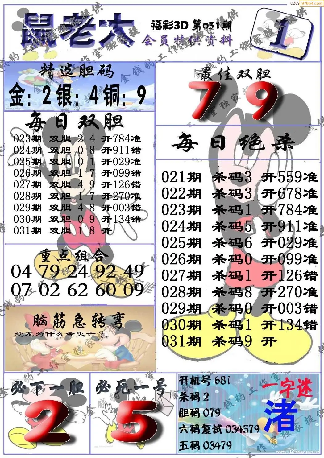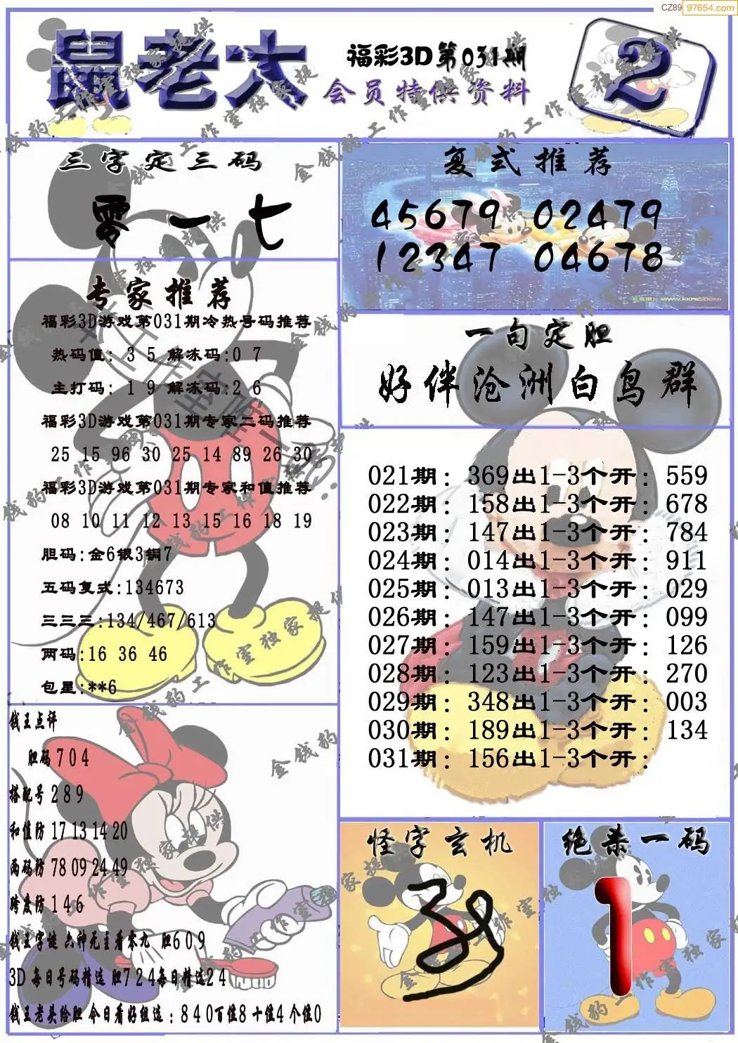 2026年031期福彩3d真鼠老大