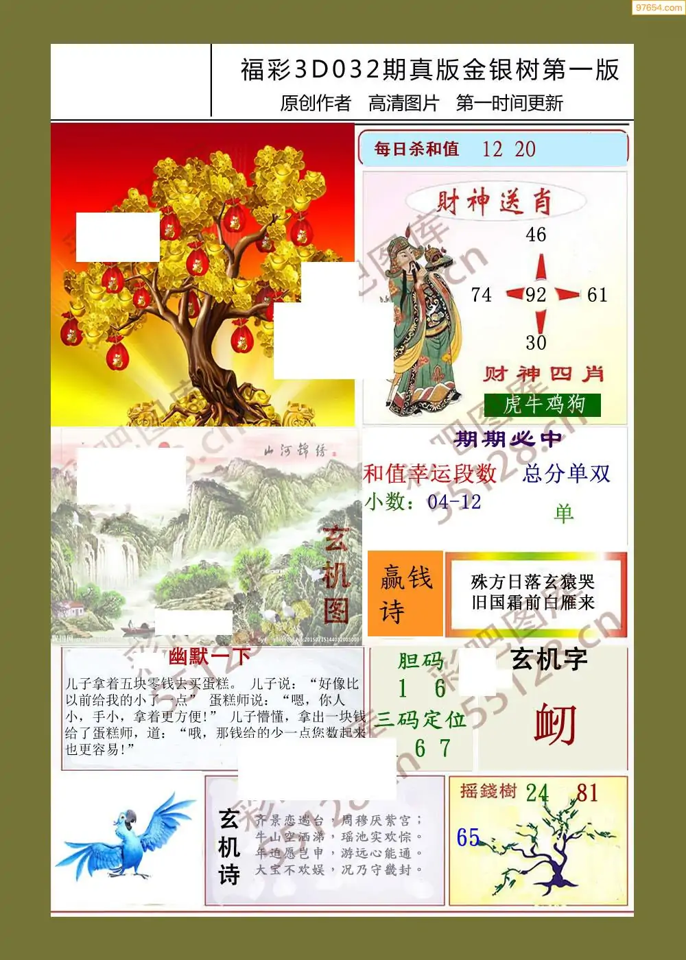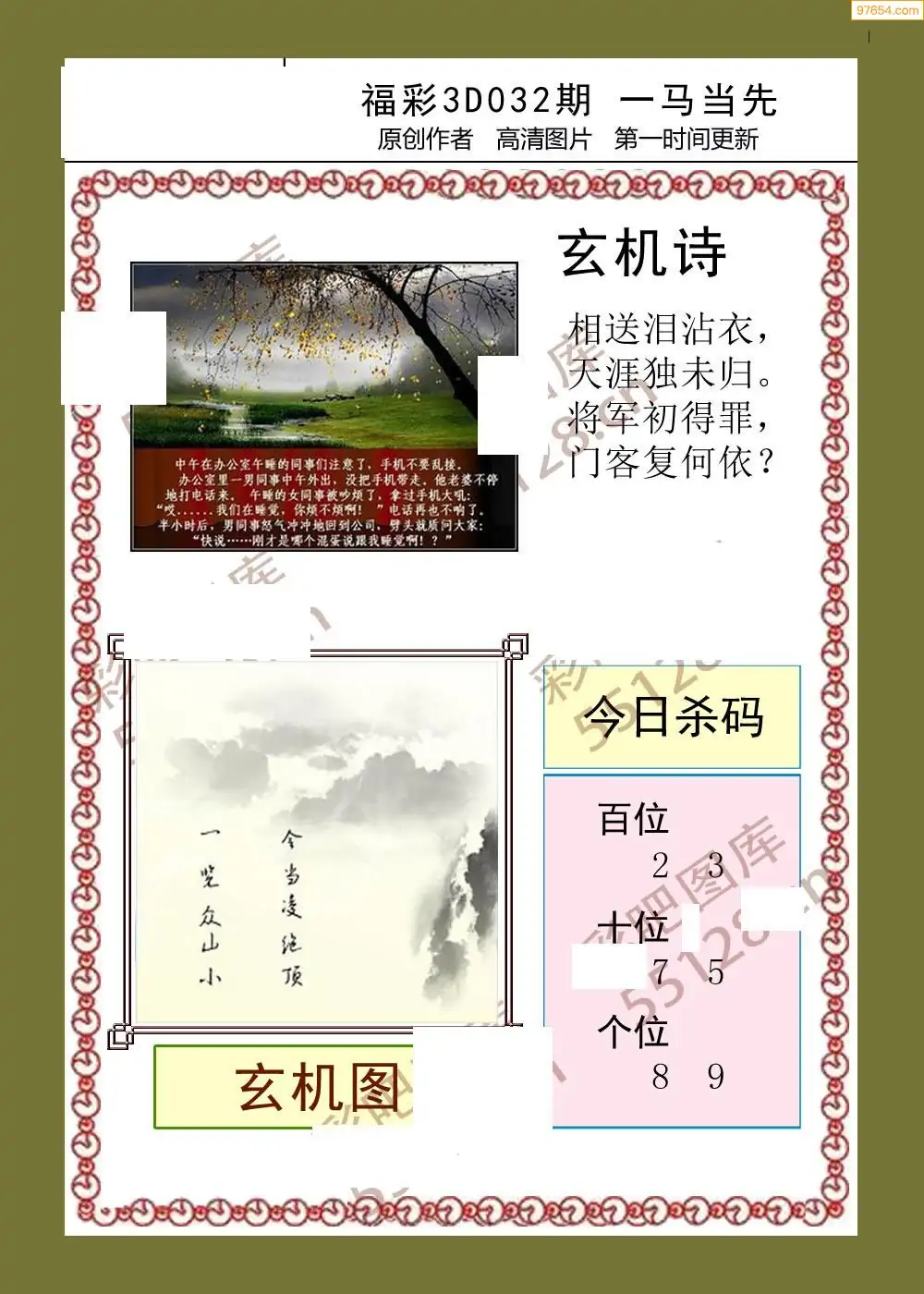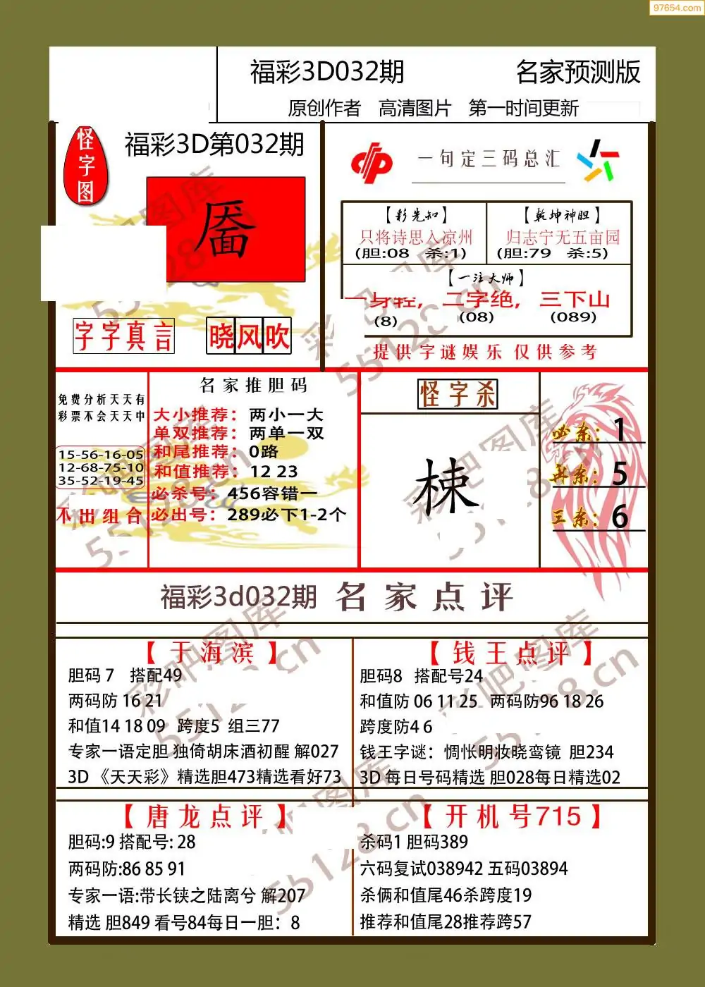 032期鑫马分析+杀手报3d图谜