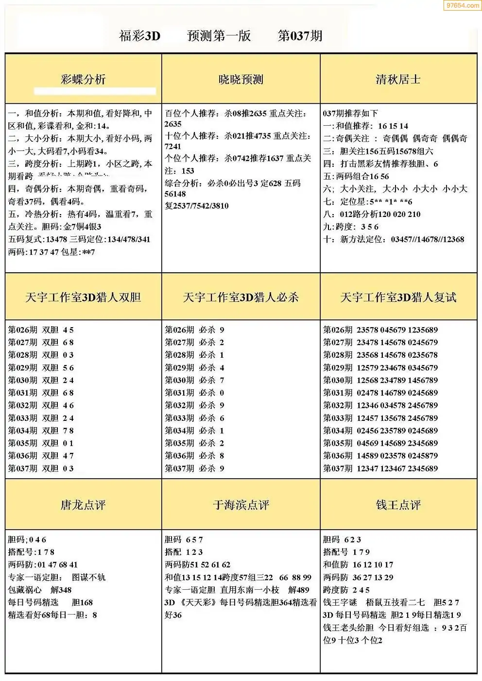 福彩3D037期天牛彩吧套图整合总汇
