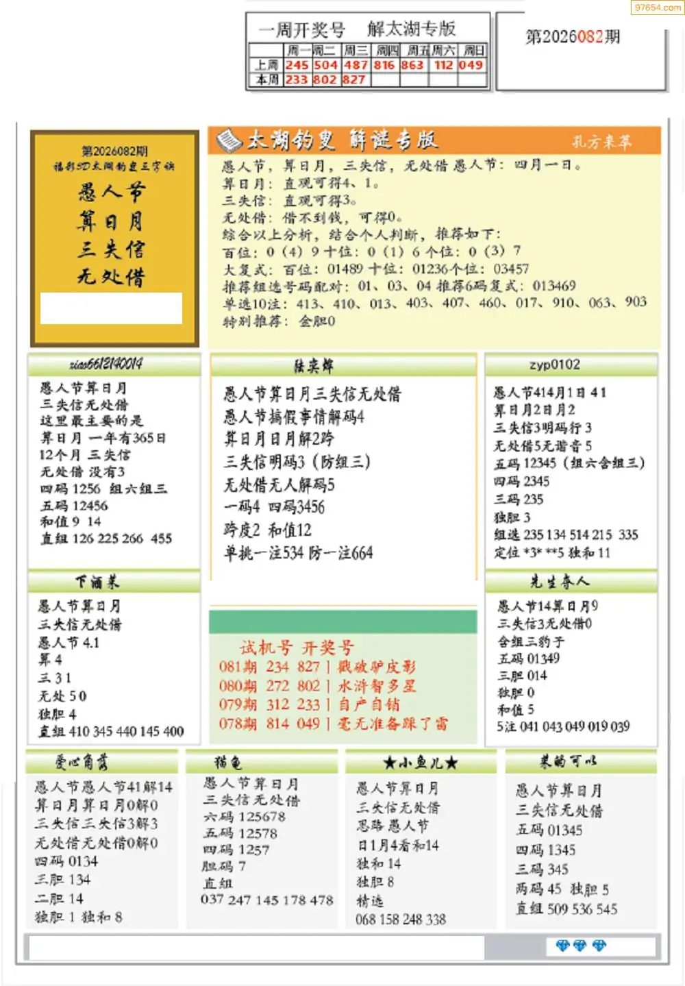 26年082期3D各板块资料整合汇总
