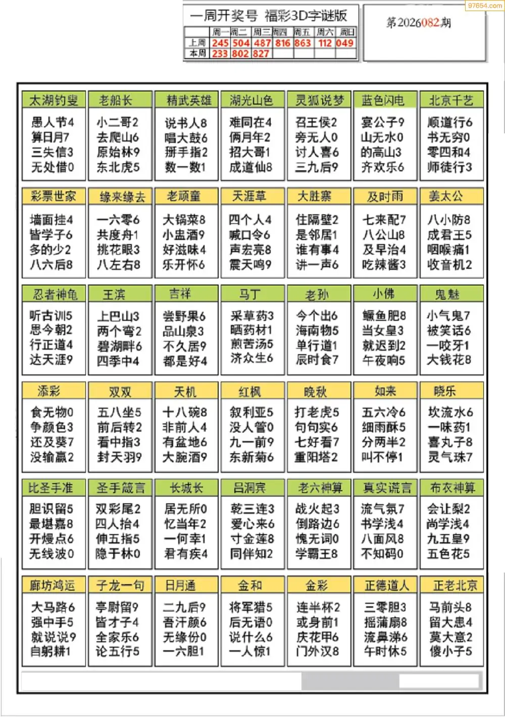 26082期3d童谣字图迷