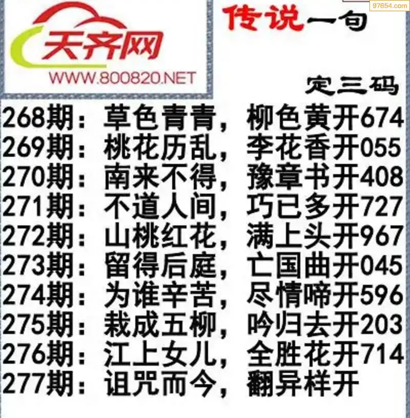 278期3D晚秋(乙种和值)谜:成长快乐 D:极乐西方