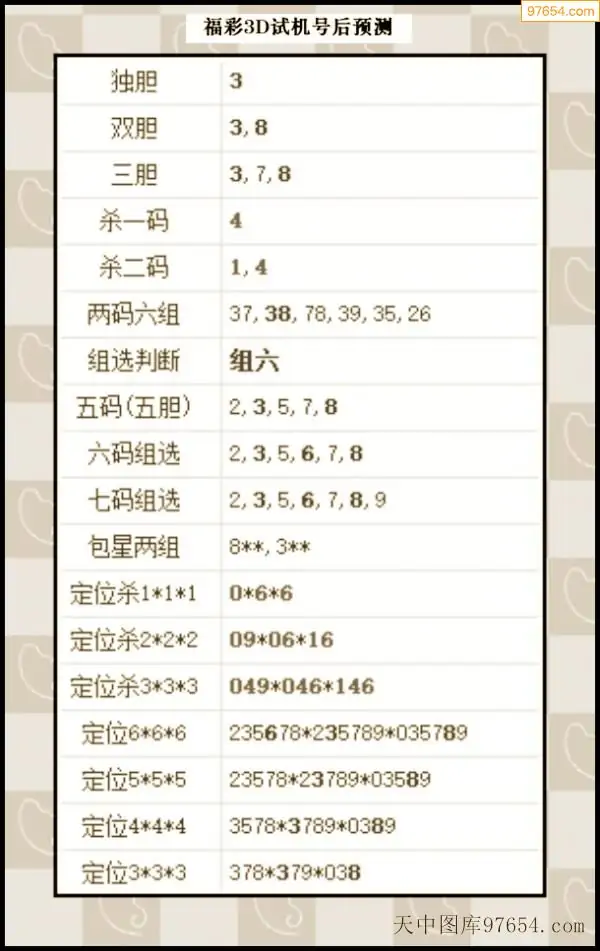 3D杀码 3D胆码 3D字谜 杀尾跨 试机号 藏机图 综合图 打印图 布衣图 胆码图 杀码图 实票欣赏 宝彩网 天中首页 天中APP