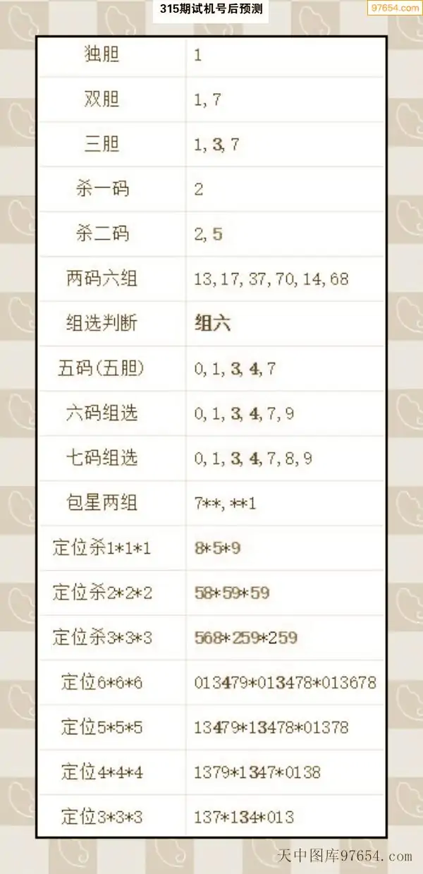 3D杀码 3D胆码 3D字谜 杀尾跨 试机号 藏机图 综合图 打印图 布衣图 胆码图 杀码图 实票欣赏 宝彩网 天中首页 天中APP