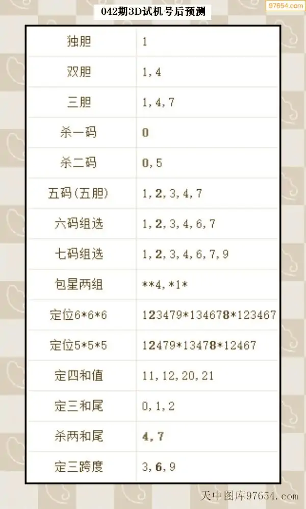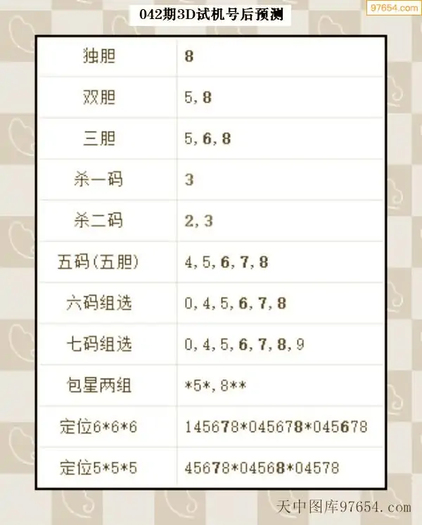 042期铜墙铁壁3D试机号预测