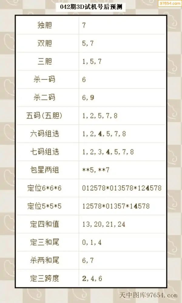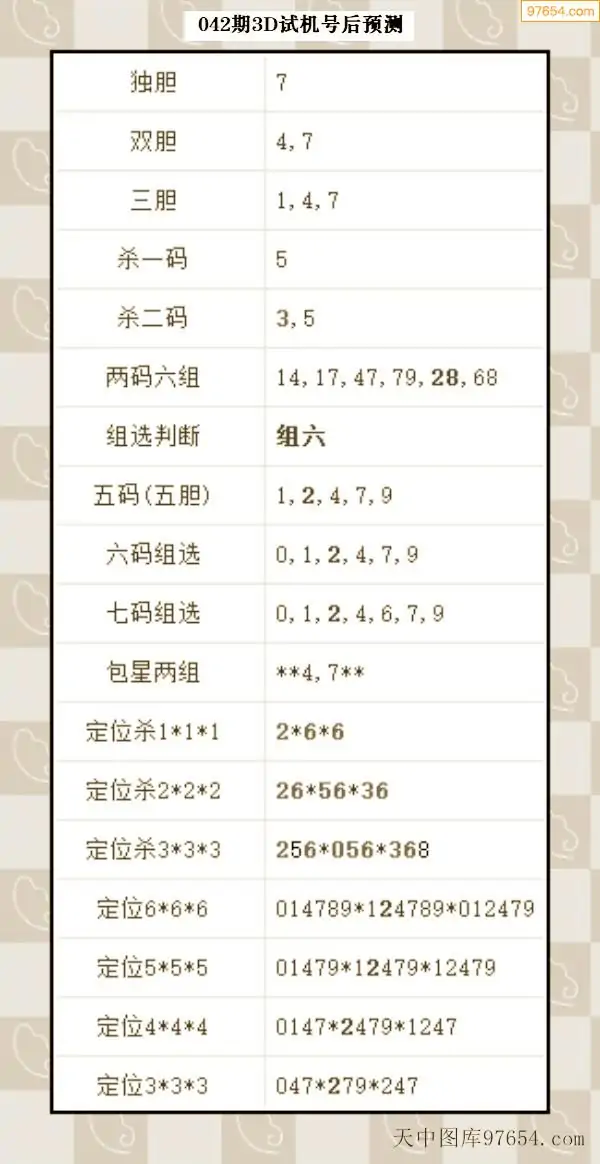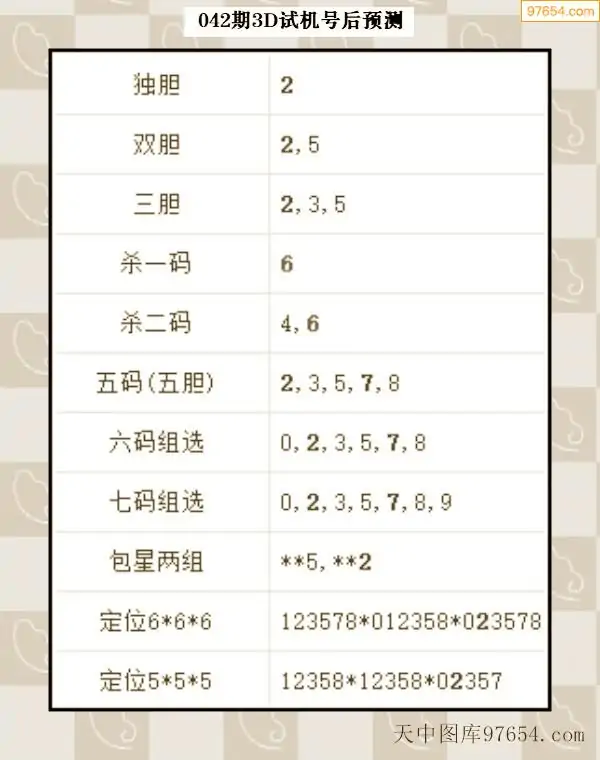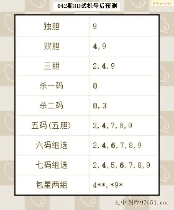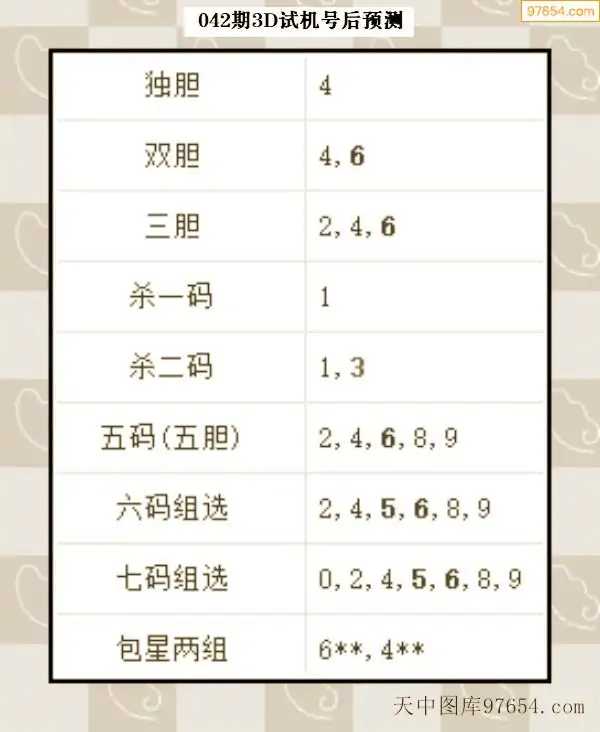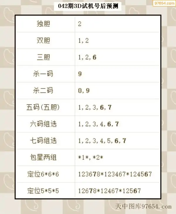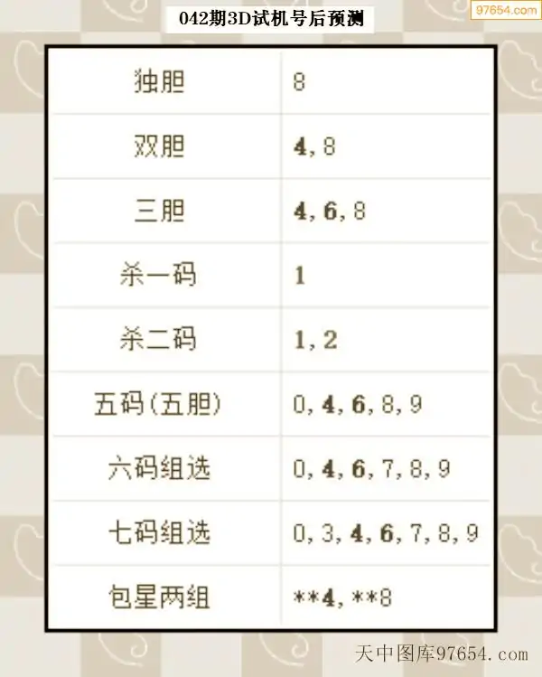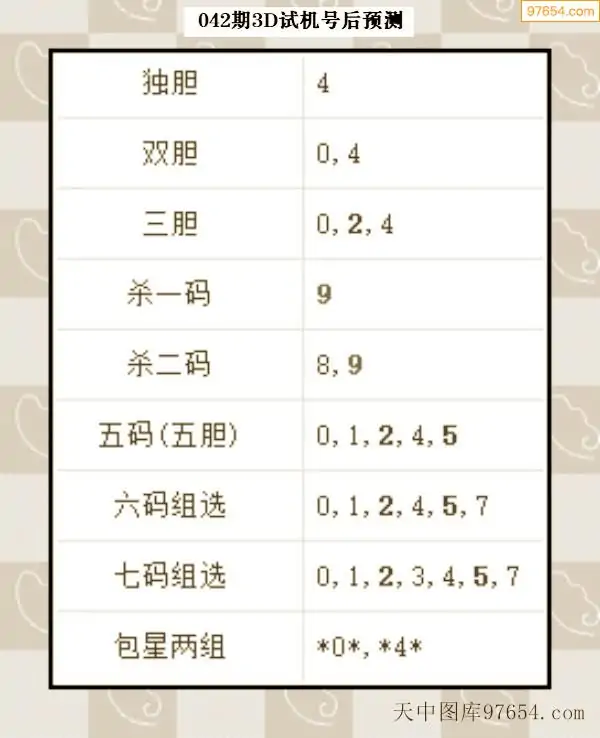 042期西南胆王预测本期3D开奖结果