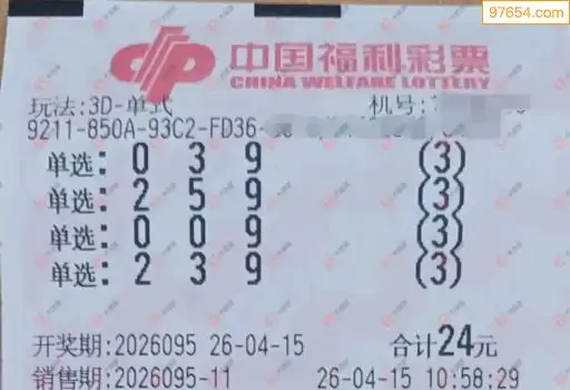 26年095期彩友专家3D试机号后分析汇总