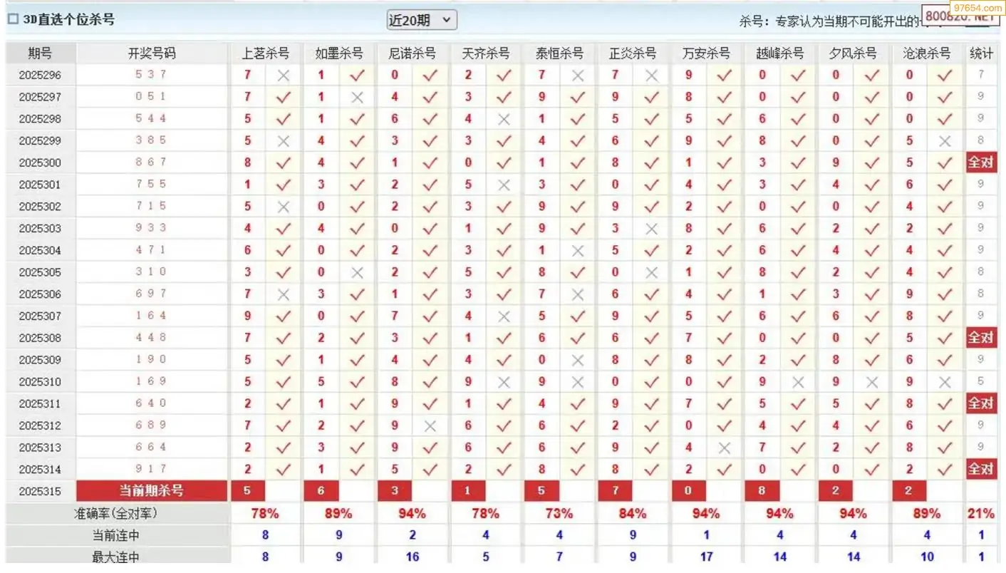 秋风过耳315期3D杀号 8连中