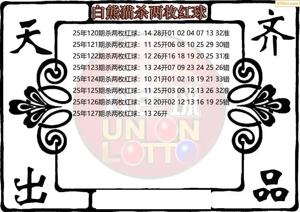 25年双色球127期白熊猫杀两枚红球图谜