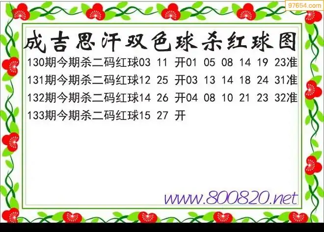 25年双色球133期成吉思汗杀二码红球图迷