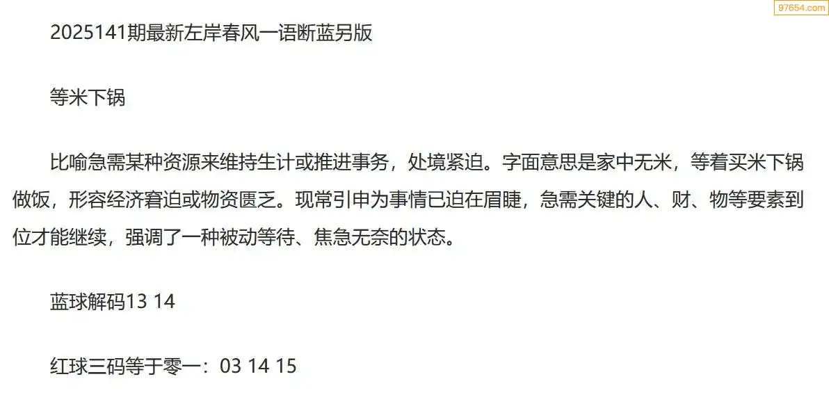 左岸春风另版双色球25年141期一语断蓝