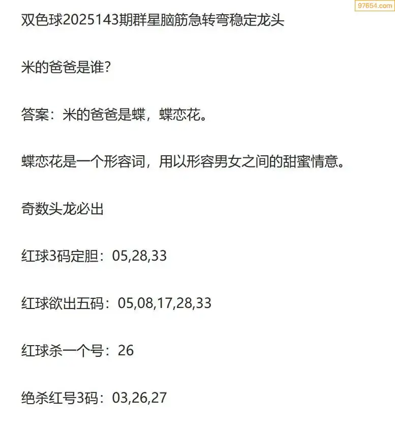群星双色球25年143期脑筋急转弯龙头谜语