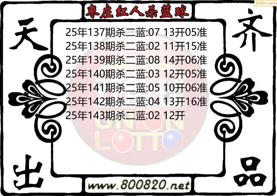 25年双色球143期枣庄红人杀二蓝图迷