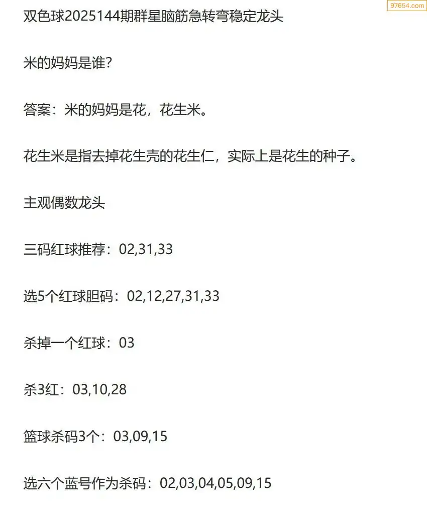 群星双色球25年144期脑筋急转弯龙头谜语