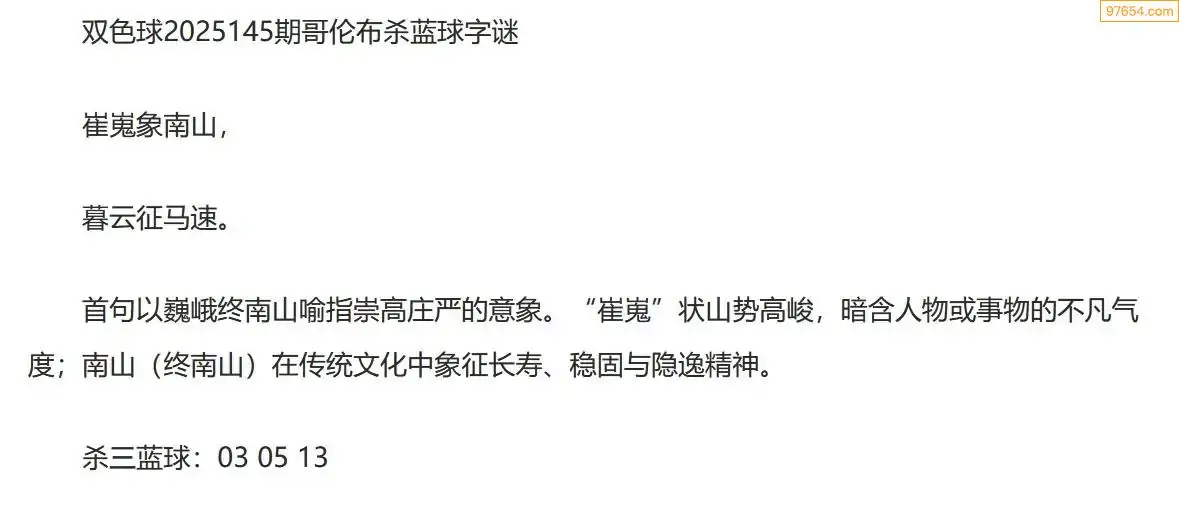 哥伦布双色球25年145期一句杀蓝球字迷