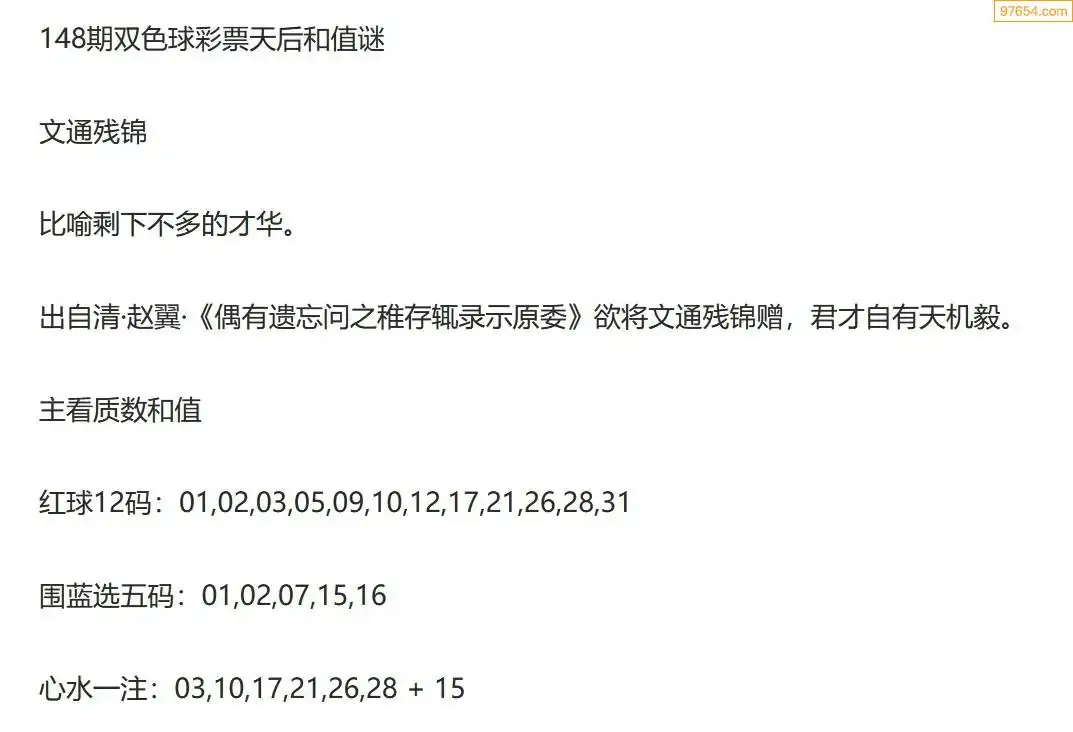 148期牛彩双色球字迷诗迷汇总(天中整理)