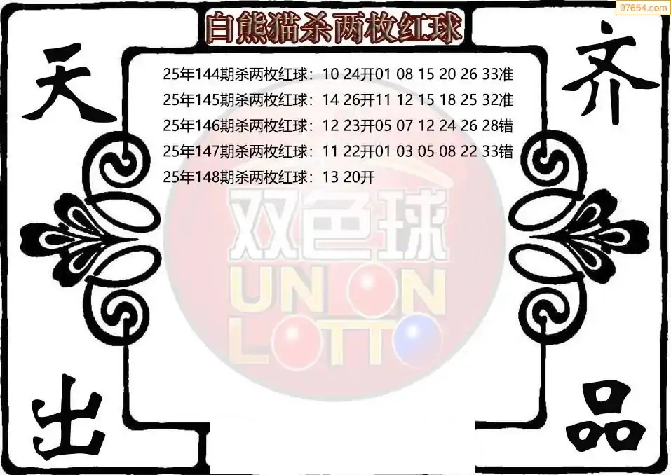 25年双色球148期白熊猫杀两枚红球图谜