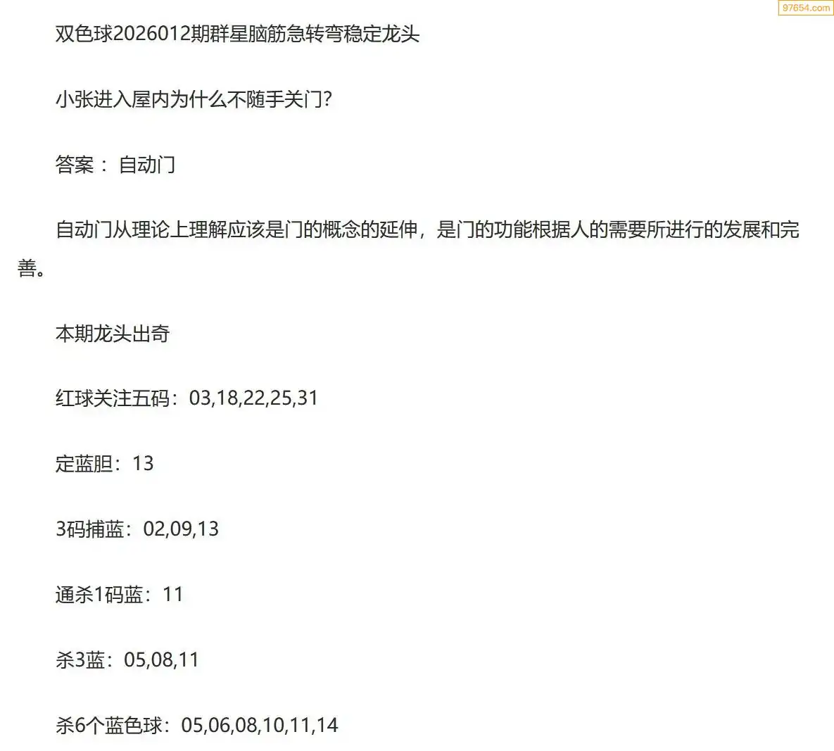 群星双色球26年012期脑筋急转弯龙头谜语