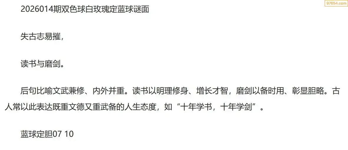 白玫瑰双色球26年014期定蓝球字谜