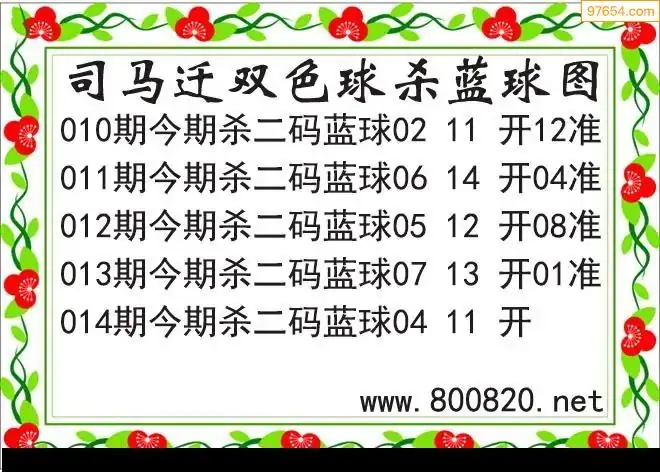 26年双色球014期司马迁杀二蓝破解图谜