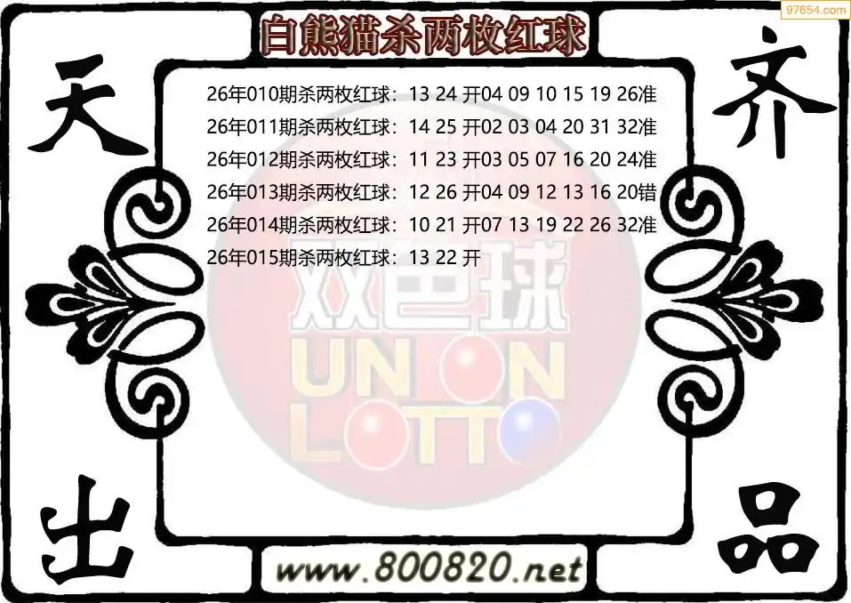 26年双色球015期白熊猫杀两枚红球图谜