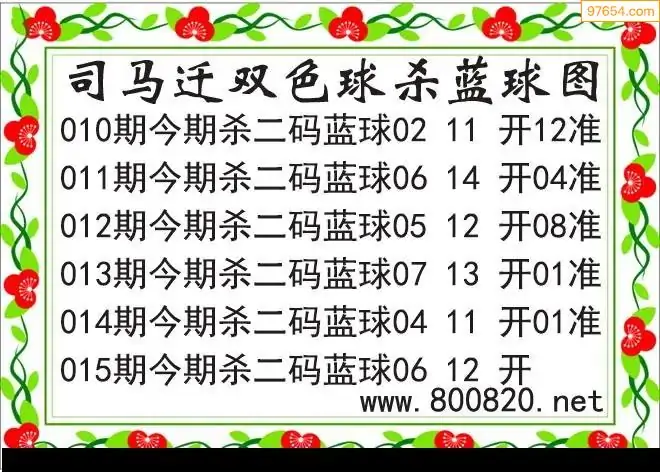 26年双色球015期司马迁杀二蓝破解图谜