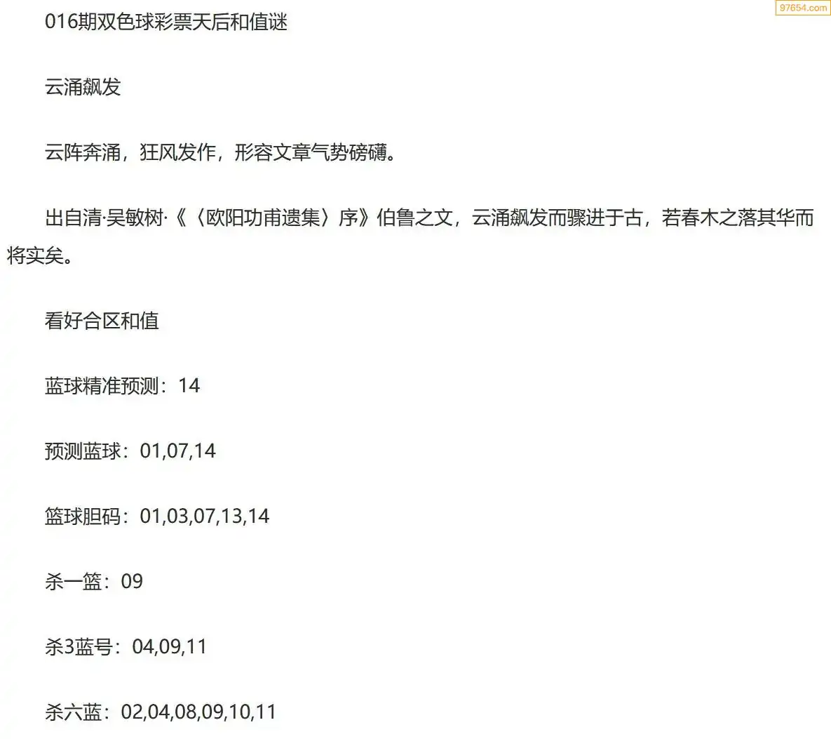 016期牛彩双色球字迷诗迷汇总(天中整理)