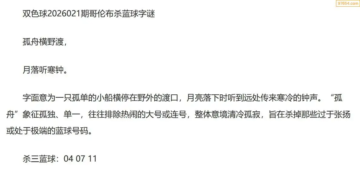 哥伦布双色球26年021期一句杀蓝球字迷