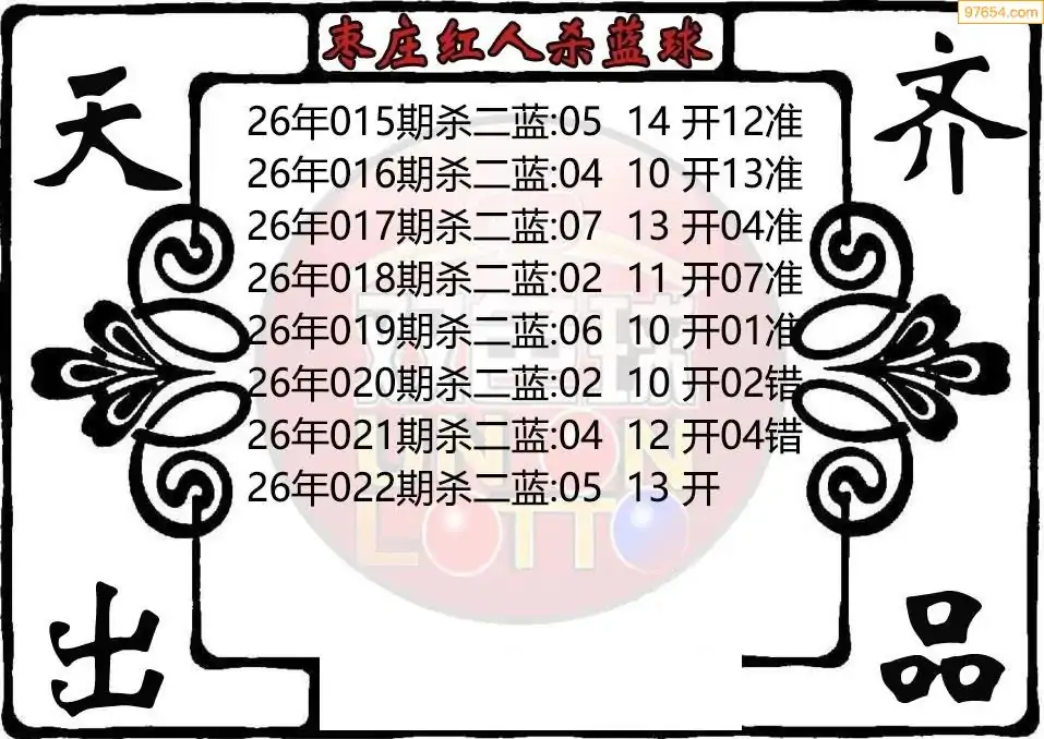 26年双色球022期枣庄红人杀二蓝图迷