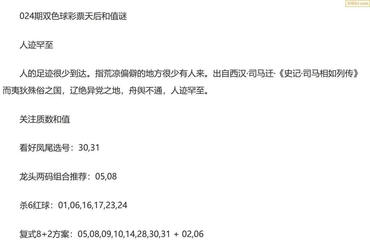 彩票天后双色球26年024期今日和值谜