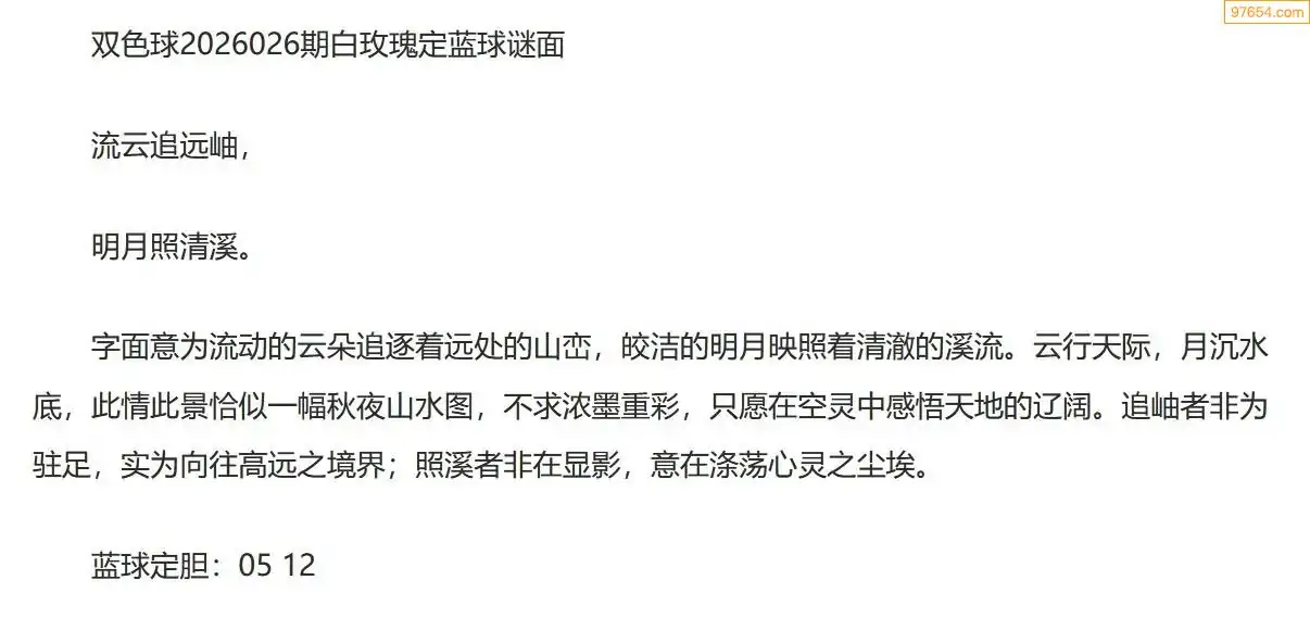 白玫瑰双色球26年026期定蓝球字谜