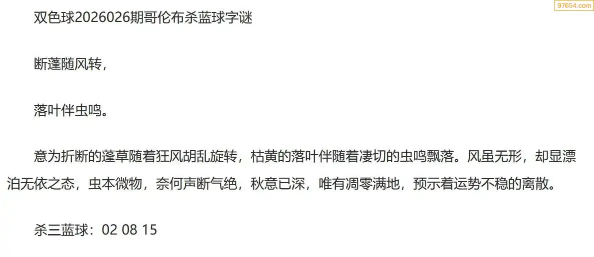 哥伦布双色球26年026期一句杀蓝球字迷
