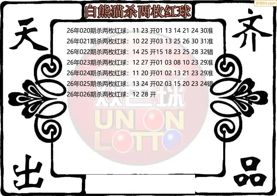 26年双色球026期白熊猫杀两枚红球图谜