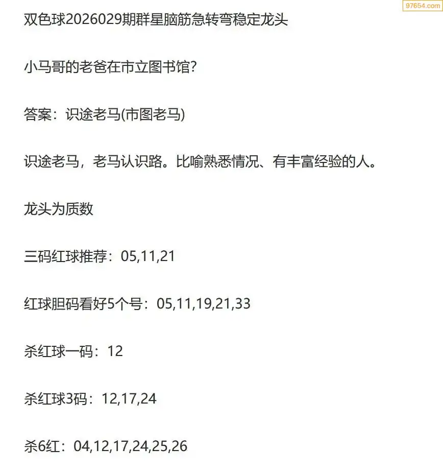 群星双色球26年029期脑筋急转弯龙头谜语