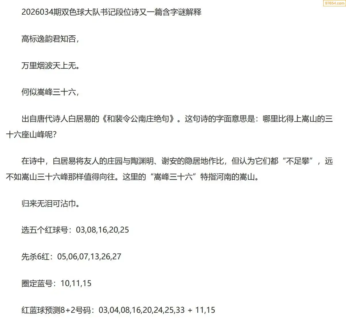大队书记双色球26年034期段位诗谜