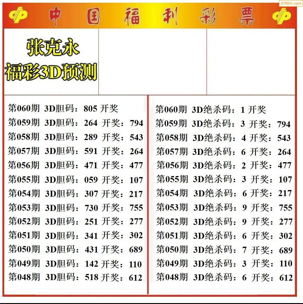 (8)26年060期今日3d各类彩报汇总