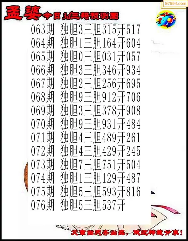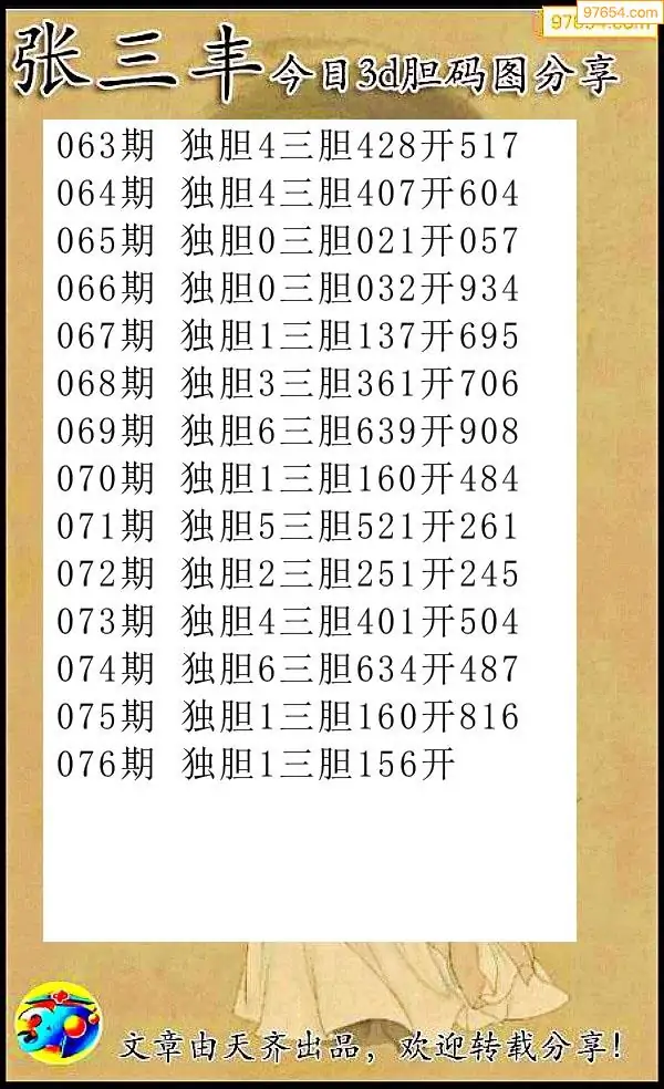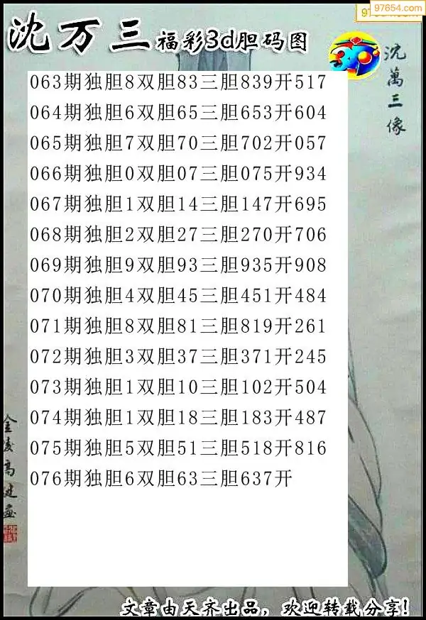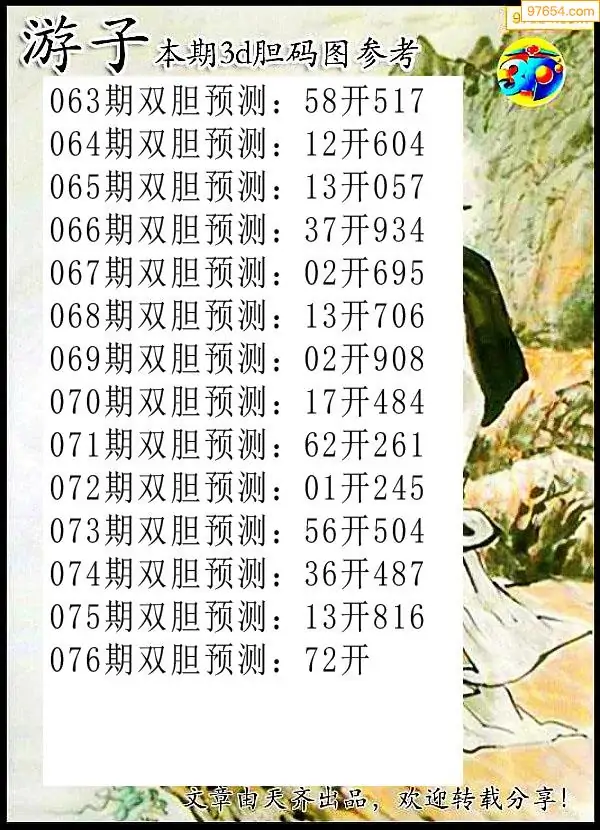 2026076期彩彩网3d原创图迷搜集(天中整理)
