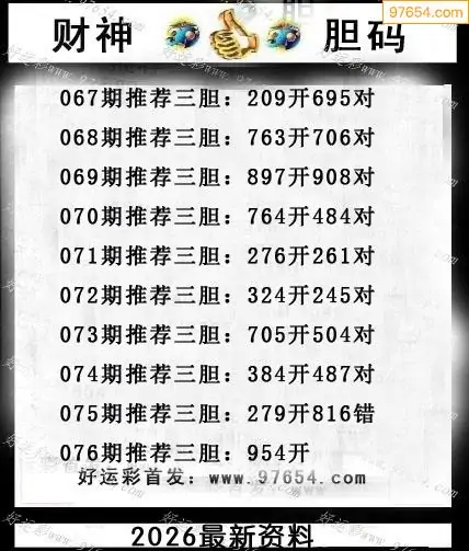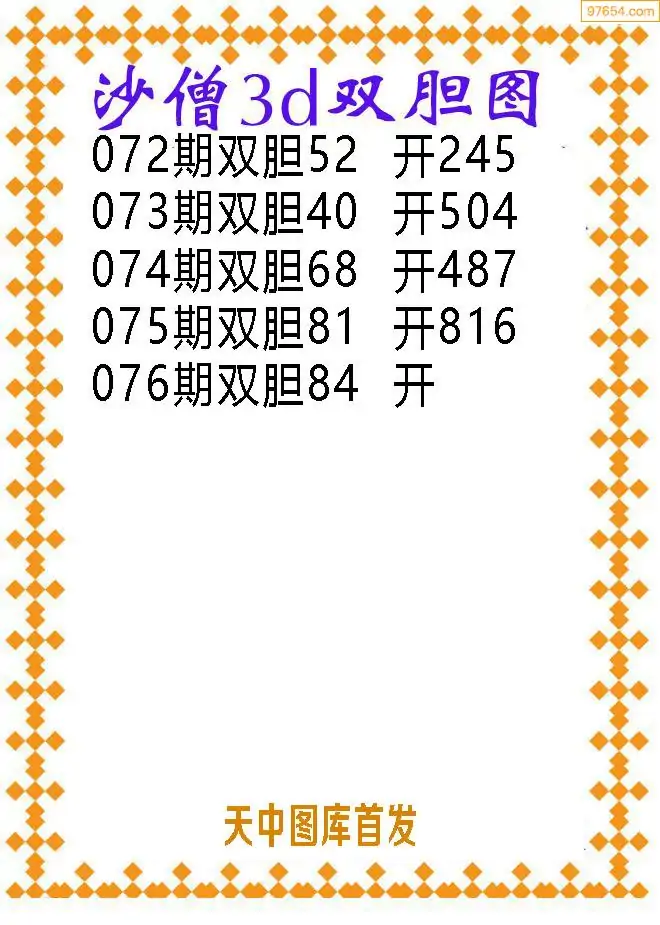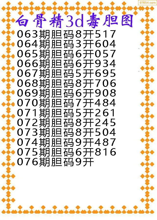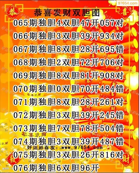 076期97654本站收集胆码出号预测