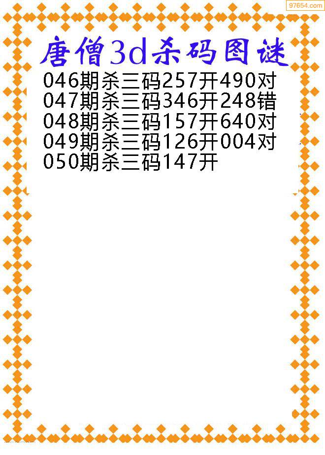 050期唐僧杀三码3d天中图库(原创)