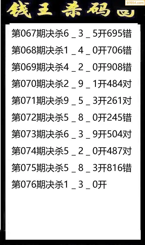 076期97654本站收集杀码出号预测